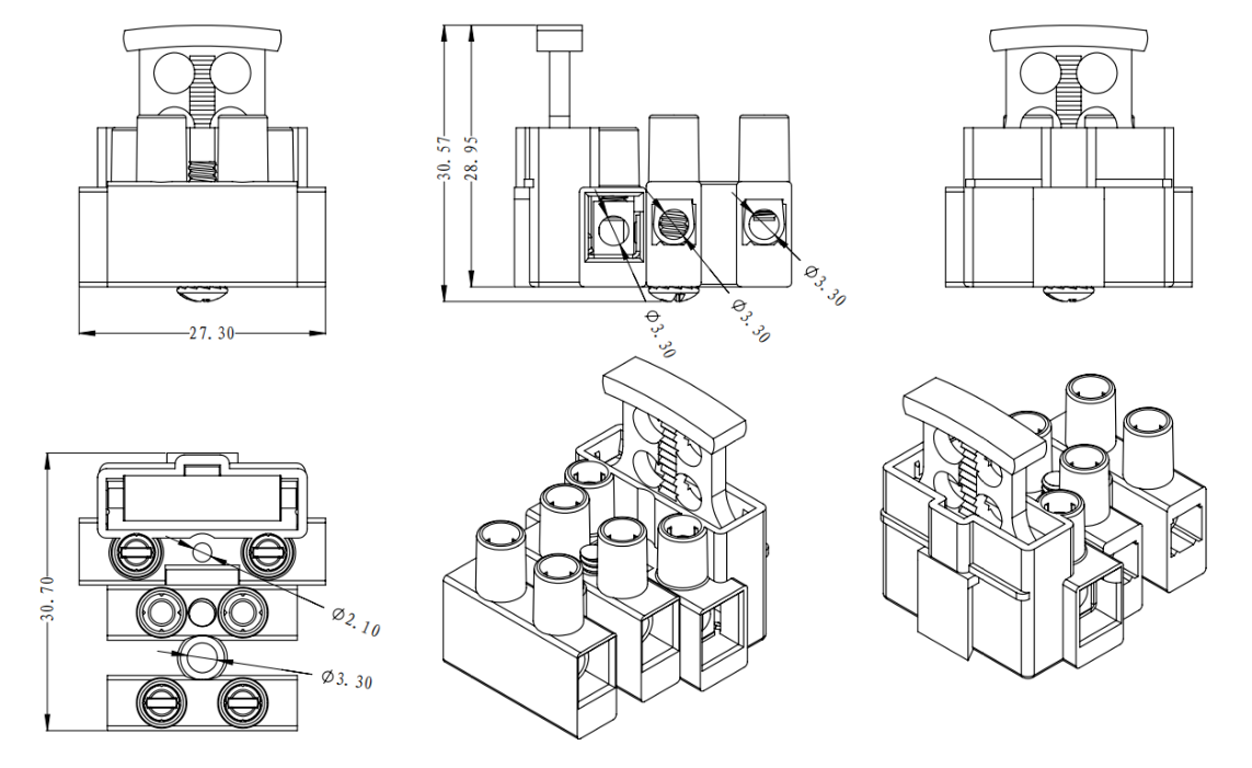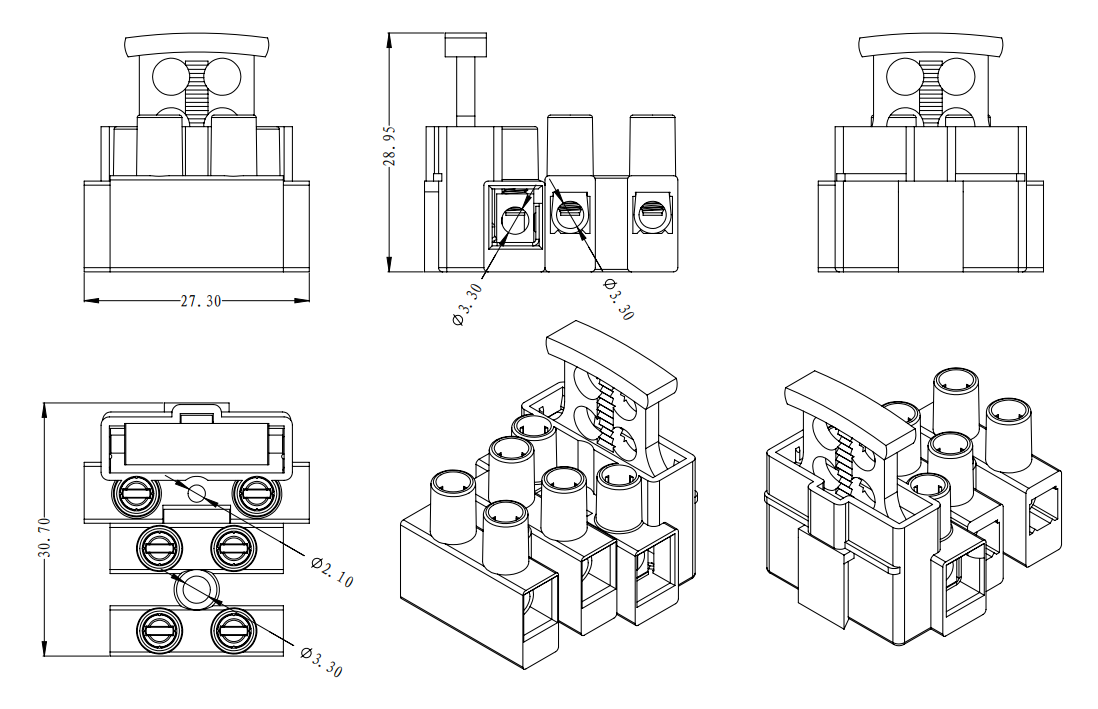 | 連接容量 | 實(shí)芯線 | 2.5-4.0mm2 | 0.5-4.0mm2 |