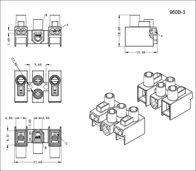 | 兩側(cè)直插端(A孔) | 實(shí)心線 | 0.5-1.5mm2 |