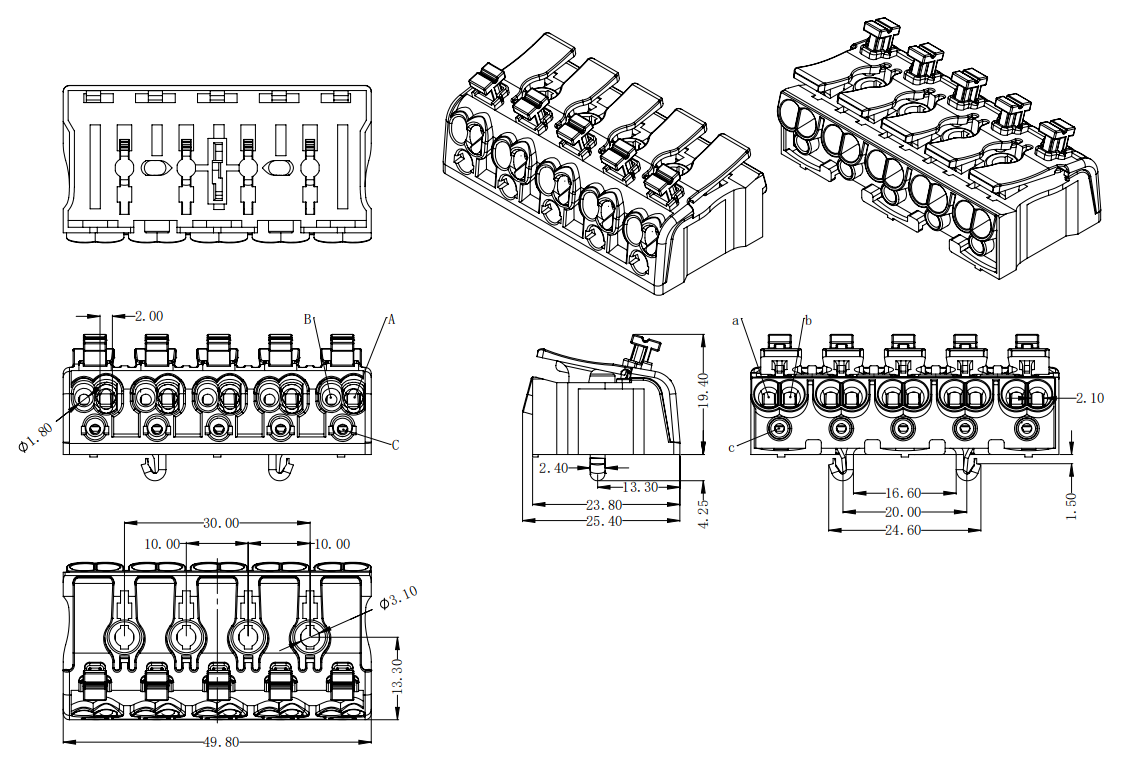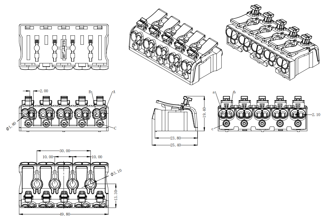 | 工廠側(cè) | A孔 | 實芯線 | 0.5-2.5mm2 | AWG 14-20 |
