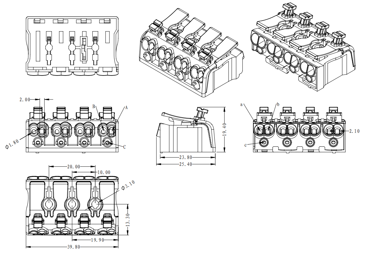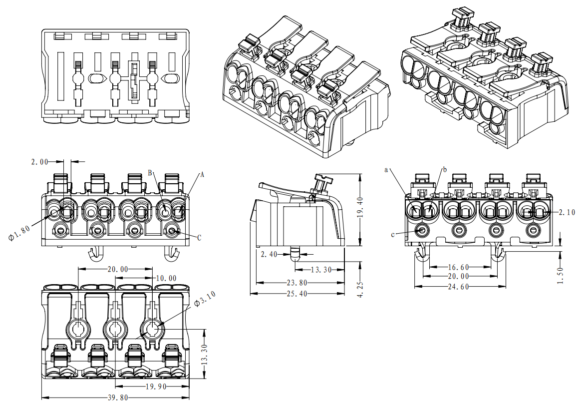 | 工廠側(cè) | A孔 | 實(shí)芯線 | 0.5-2.5mm2 | AWG 14-20 |