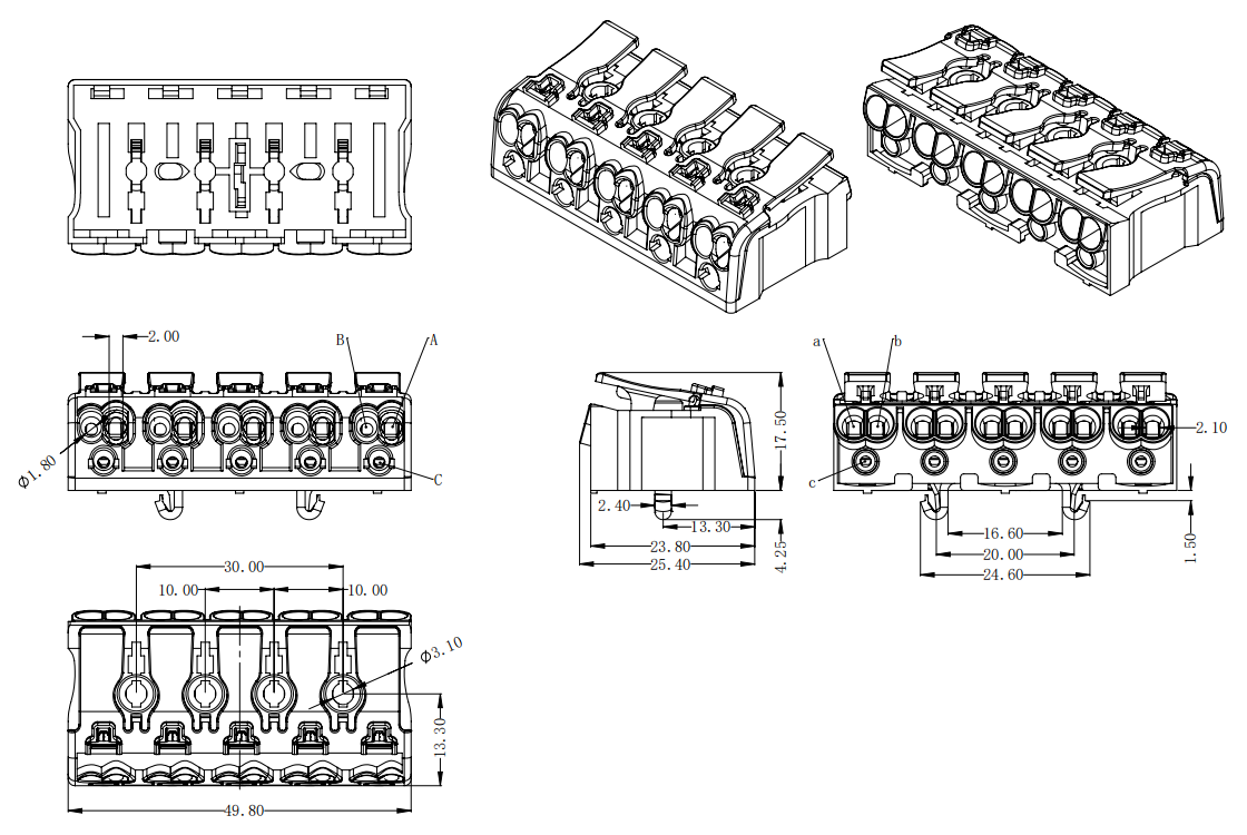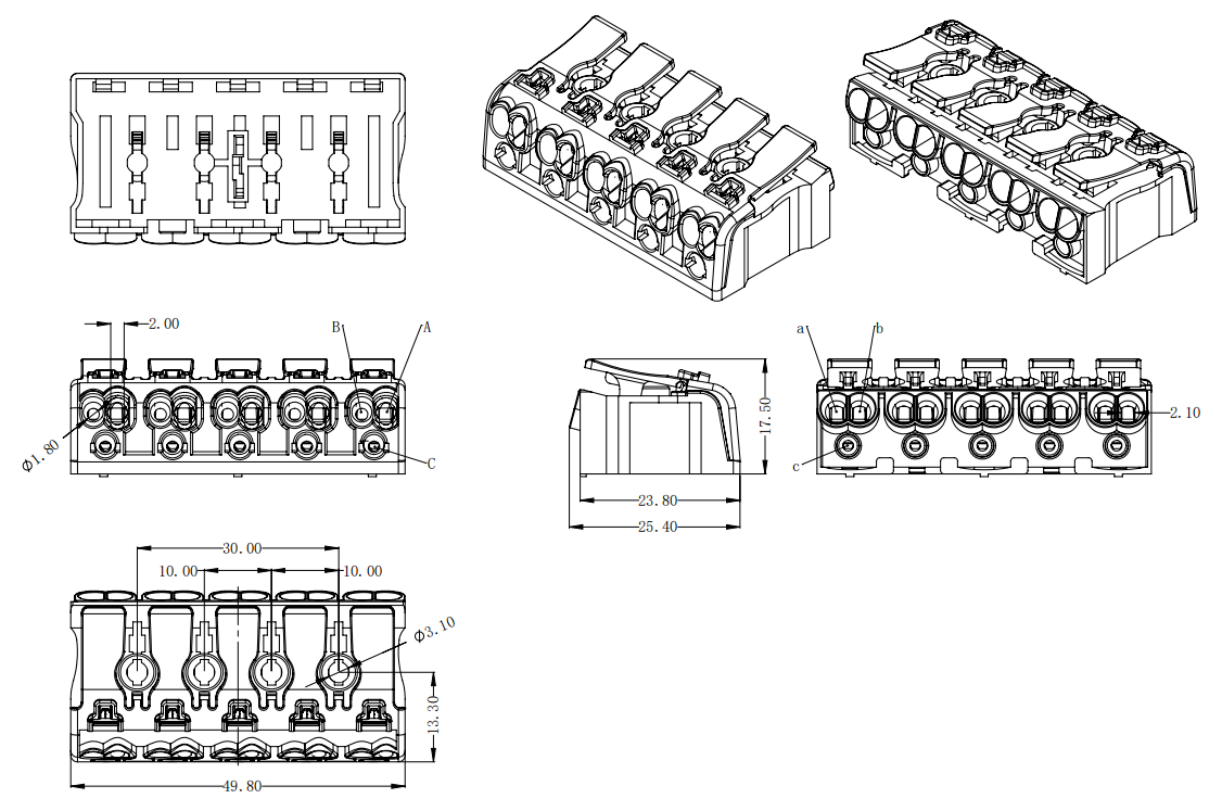 | 工廠側(cè) | A孔 | 實(shí)芯線 | 0.5-2.5mm2 | AWG 14-20 |