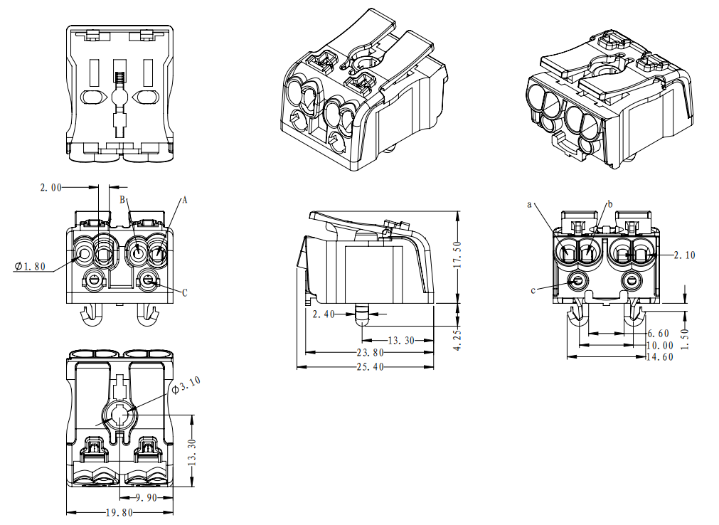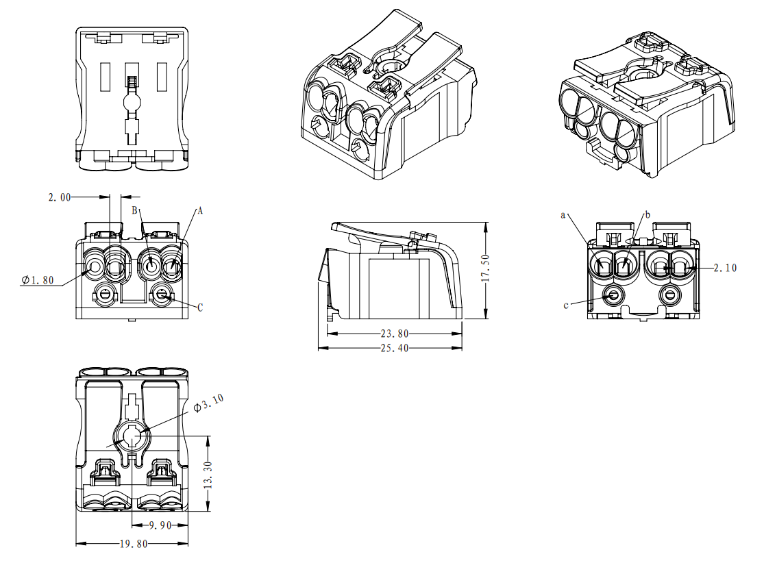 | 工廠側(cè) | A孔 | 實芯線 | 0.5-2.5mm2 | AWG 14-20 |