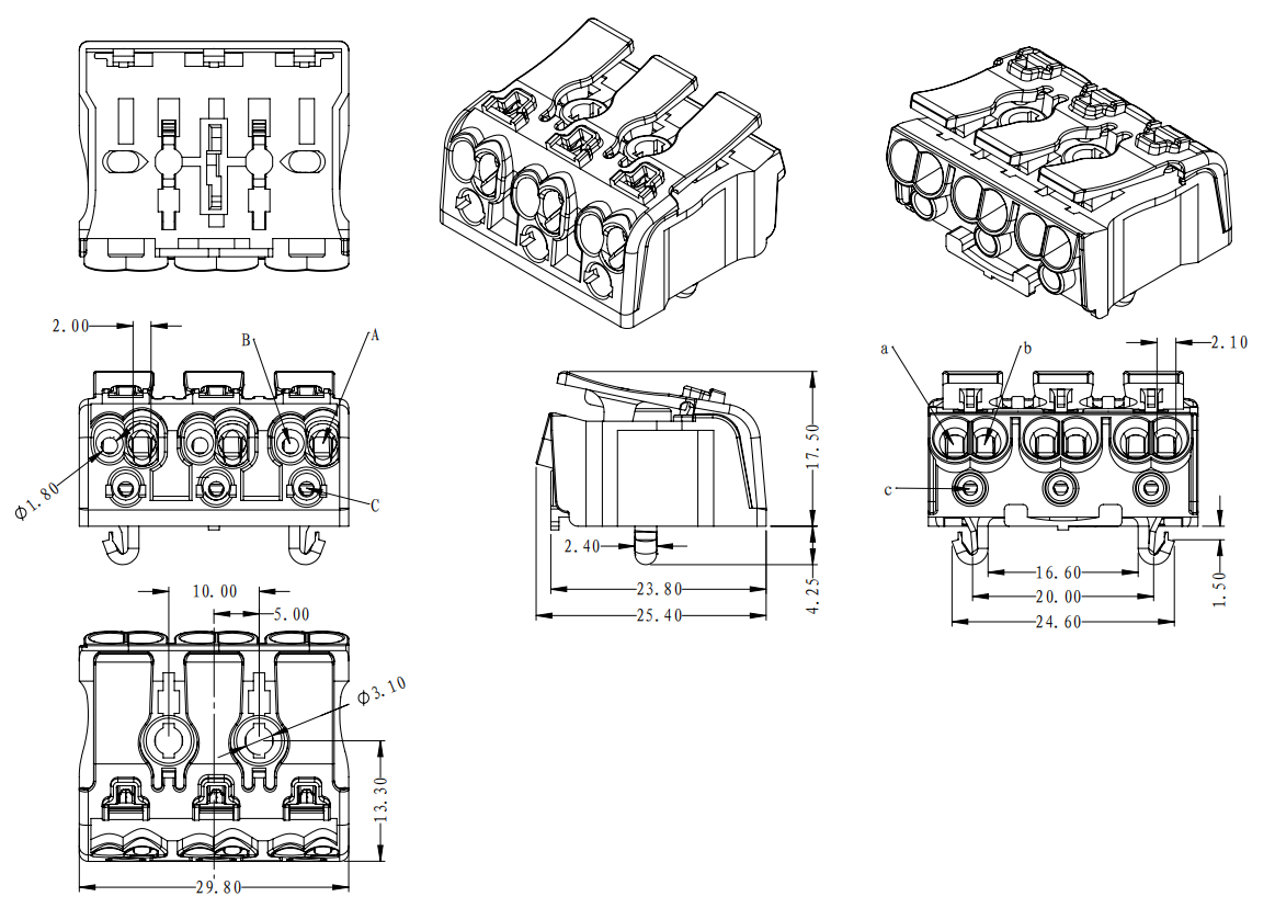 | 工廠側(cè) | A孔 | 實(shí)芯線 | 0.5-2.5mm2 | AWG 14-20 |