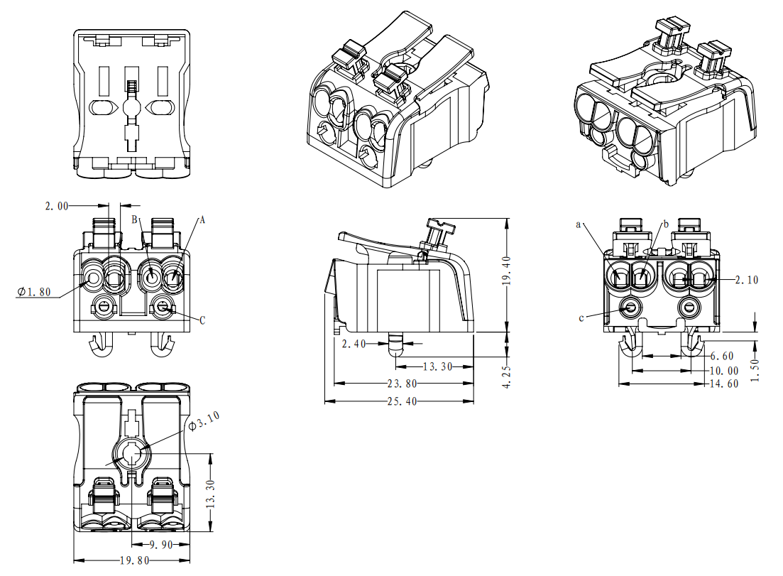 | 工廠側(cè) | A孔 | 實芯線 | 0.5-2.5mm2 | AWG 14-20 |